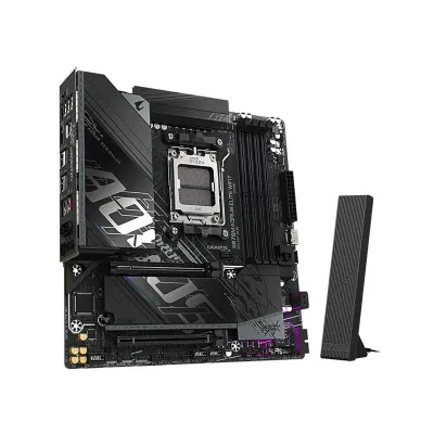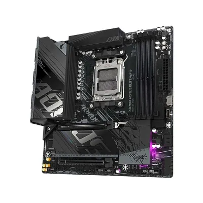 The GIGABYTE X870M AORUS ELITE WIFI7 is a high-end Micro-ATX AM5 motherboard built for serious gaming and performance-oriented PC builds. Engineered around the AMD X870 chipset and supporting Ryzen™ 7000/8000/9000 series processors, it features a robust 14 + 2 + 2 phase digital VRM design, dual-channel DDR5 support (up to 8200 MT/s O.C.), an ultra-durable 6-layer 2× copper PCB, and advanced thermal solutions including VRM thermal armor and M.2 thermal guards. For storage and expansion, it includes multiple M.2 slots (including PCIe 5.0 x4), a full-length PCIe 5.0 x16 slot (UD Slot X) plus additional PCIe 4.0 x4 expansion. Connectivity options are top-tier: Wi-Fi 7 (802.11be) with directional high-gain antenna, Bluetooth 5.4, 2.5 GbE LAN, dual USB4 Type-C ports (40 Gb/s), numerous USB 3.2 Gen1/Gen2 ports, HDMI and more. The board also offers comprehensive DIY-friendly features like EZ-Latch, Q-Flash Plus, onboard debug LEDs, and full RGB Fusion support for customizing your system’s look. Ideal for builders looking to craft a compact yet high-performance system, the X870M AORUS ELITE WIFI7 brings together next-generation CPU support, memory overclocking potential, fast networking, and strong build quality.