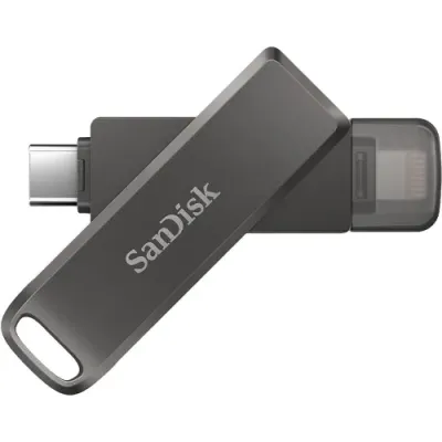 The SanDisk iXpand Luxe 64GB Lightning & USB 3.0 Dual Mode Pen Drive is the ultimate solution for seamless data transfer and storage between your Apple devices and computers. With both Lightning and USB 3.0 connectors, this sleek and compact drive allows you to quickly transfer photos, videos, music, and documents between your iPhone, iPad, and computer without the need for an internet connection. The dual-mode functionality offers ultimate flexibility, making it easy to back up your important files directly from your device or expand your storage space. With 64GB of capacity, you can store plenty of content on-the-go, and its high-speed USB 3.0 ensures quick file transfers, making it a perfect companion for anyone needing fast and secure data management. The iXpand Luxe also includes a built-in swivel design for convenience, offering both practicality and protection for the connectors. Whether you need to free up space on your iPhone or back up files on your laptop, this pen drive is a reliable and efficient solution.