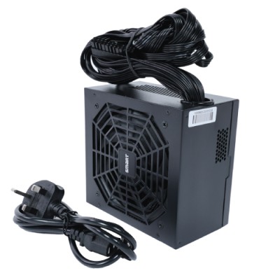 The SMART XV550 Voltforce 550W 80 Plus Bronze Power Supply is a reliable and efficient power solution designed to deliver consistent performance for modern PC builds. With an input power of 220V and a total output of 550W, it ensures stable and efficient power distribution across all components. Equipped with Active Power Factor Correction (APFC) and DC-to-DC conversion technology, this PSU maintains voltage stability and reduces power loss, meeting 80 Plus Bronze efficiency standards for optimized energy use. It features a 12CM cooling fan that provides excellent airflow with low noise levels, ensuring your system stays cool during heavy workloads. The power supply comes in a sleek black cover design and includes an input socket for easy connectivity. Its flat black cables not only enhance airflow inside the case but also offer a cleaner and more organized build appearance. Cable lengths are thoughtfully designed for flexible installation, including 2× IDE and 4× SATA connectors (450+150mm), 1× P6+2 connector (470mm), 1× P4+4 CPU connector (650mm), and a 24-pin main power cable (550mm). It also includes a 1.2M UK power cable for convenient setup. Ideal for gaming PCs and performance systems, the SMART XV550 Voltforce ensures long-lasting durability, stable output, and dependable power delivery for all your computing needs.